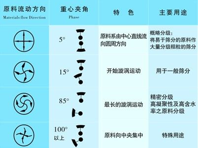三次元旋振篩由直立式電機(jī)作激振源,電機(jī)上、下兩端安裝有偏心重錘,將電機(jī)的旋轉(zhuǎn)運(yùn)動(dòng)轉(zhuǎn)變?yōu)樗?、垂直、傾斜的三次元運(yùn)動(dòng),再把這個(gè)運(yùn)動(dòng)傳遞給篩面。調(diào)節(jié)上、下兩端的相位角,可以改變物料在篩面上的運(yùn)動(dòng)軌跡。